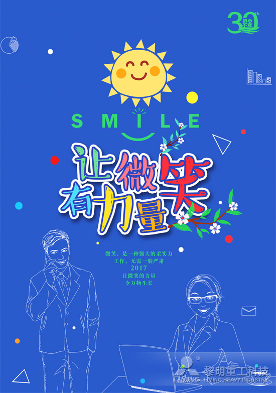“讓微笑有力量”主題文化活動在汲取一整個季節的勃勃生機之后如約發布。2017年,黎明重工文化理念延續往日傳統之后再優化,倡導員工做好自身健康管理,修煉強大心理素養,充分發揮各領域能量源的感染力,構建健康有序、積極活潑的文化氛圍。2017,讓我們期待黎明重工主題文化活動帶來的暖心驚喜。