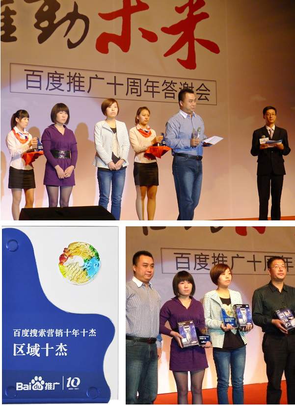 2011年,對黎明重工來說是不平凡的一年,因為今年是黎明重工科技與百度合作的第十年。十年之間,黎明與百度共同經歷風風雨雨,共同見證輝煌。在9月23日百度十周年答謝會上,黎明重工很榮幸的成為“區域十杰之最佳合作獎”得主,與百度共同回顧了十年之間的光輝歷程。